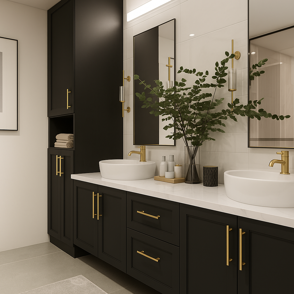 - Match Your Metals: Keep fixtures, pulls, and lighting in the same finish for cohesion.